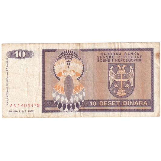 Serbia 1992 10 Dinara UNC AA 1404475 Banknote