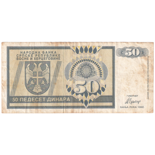 Serbia 1992 50 Dinara F AA 0660038 Banknote