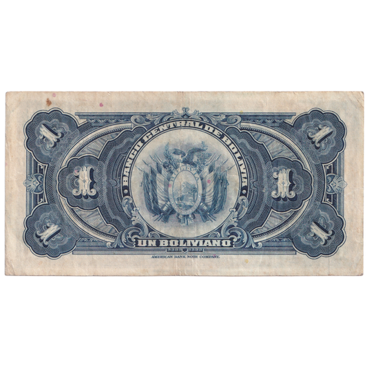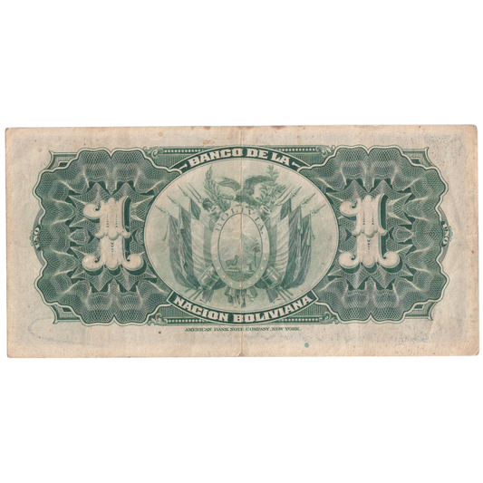 Bolivia 1928 1 Boliviano F 068999 Banknote
