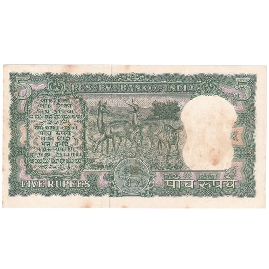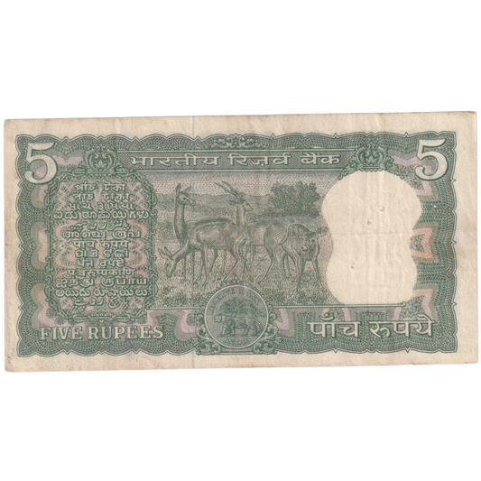 India 1967-70 5 Rupees F J4 385440 Banknote