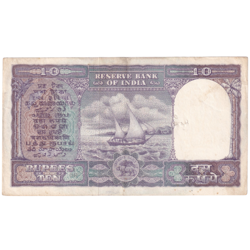 India 1962-67 10 Rupees F D40 583469 Banknote