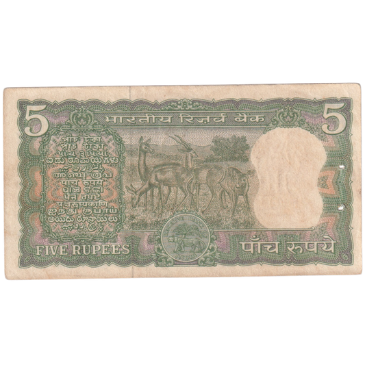 India 1970-75 5 Rupees UNC H59 792400 Banknote
