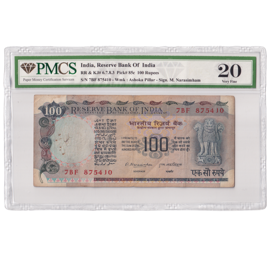 India 1977 100 Rupees Sign M.Narasimham PMCS Certified 20 7BF 875410 Banknote