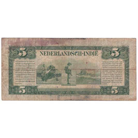 NETHERLAND 1943 5 GULDEN F CH388230 Banknote