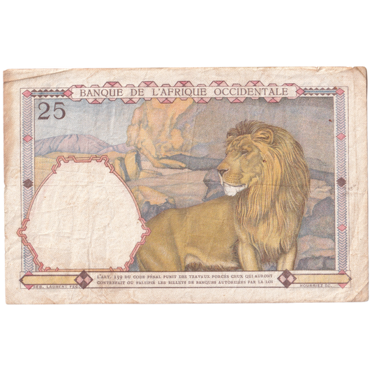 FRENCH WEST AFRICA 1936 25 FRANCS VF 04151257 Banknote