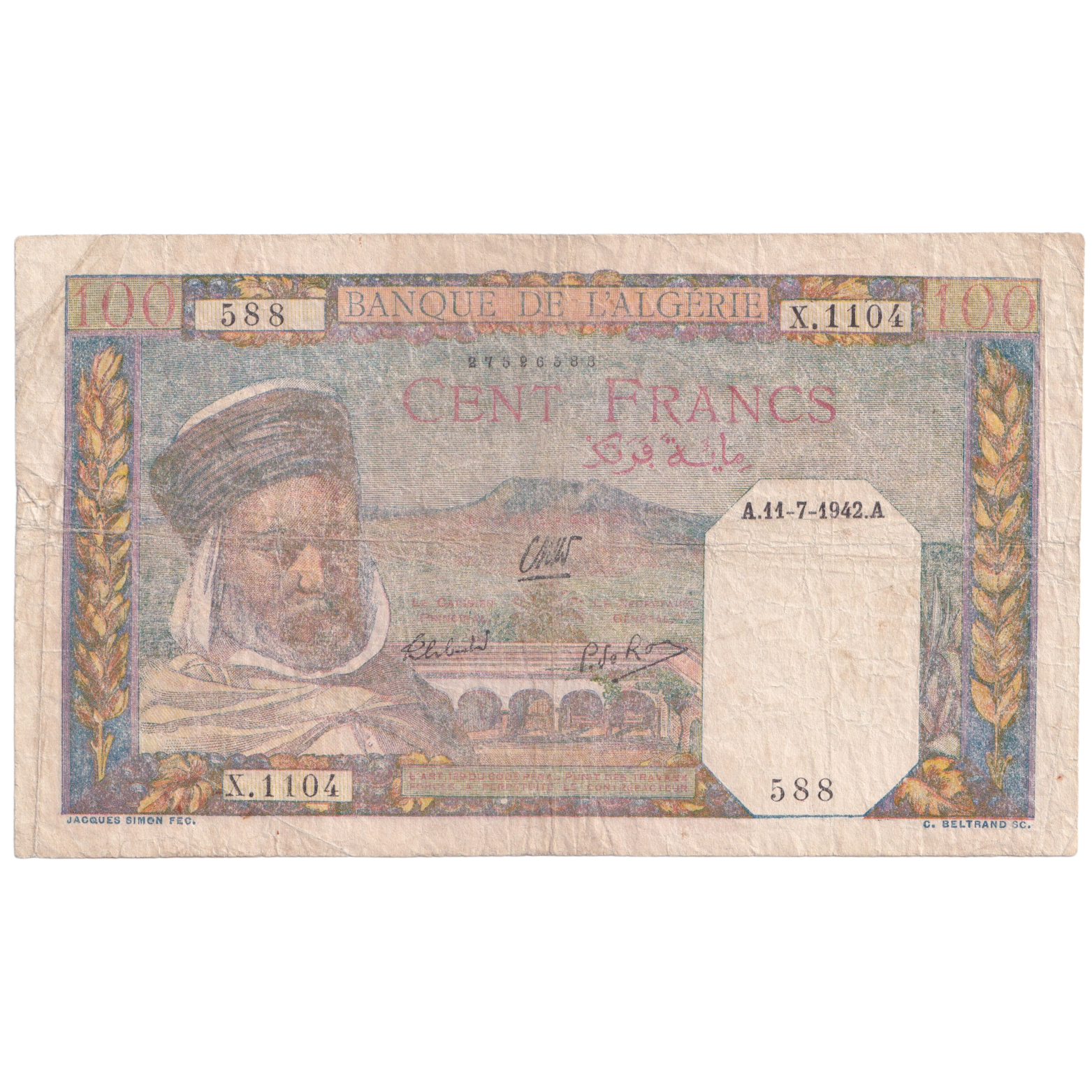 ALGERIA 1942 100 FRANCS F X.1104 588 Banknote