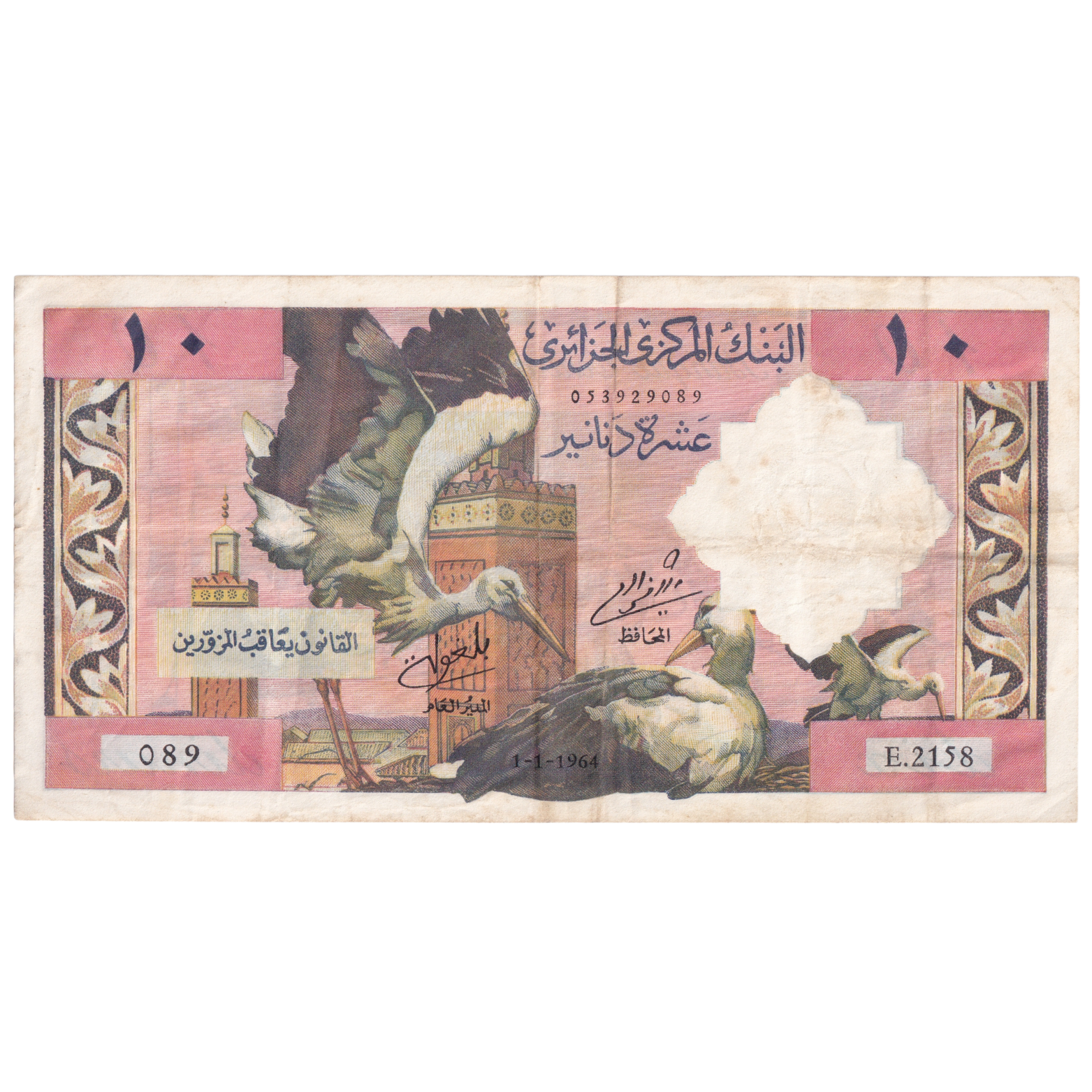 ALGERIA 1964 Ten DINARS 089 E.2158 Banknote in AUNC Condition.