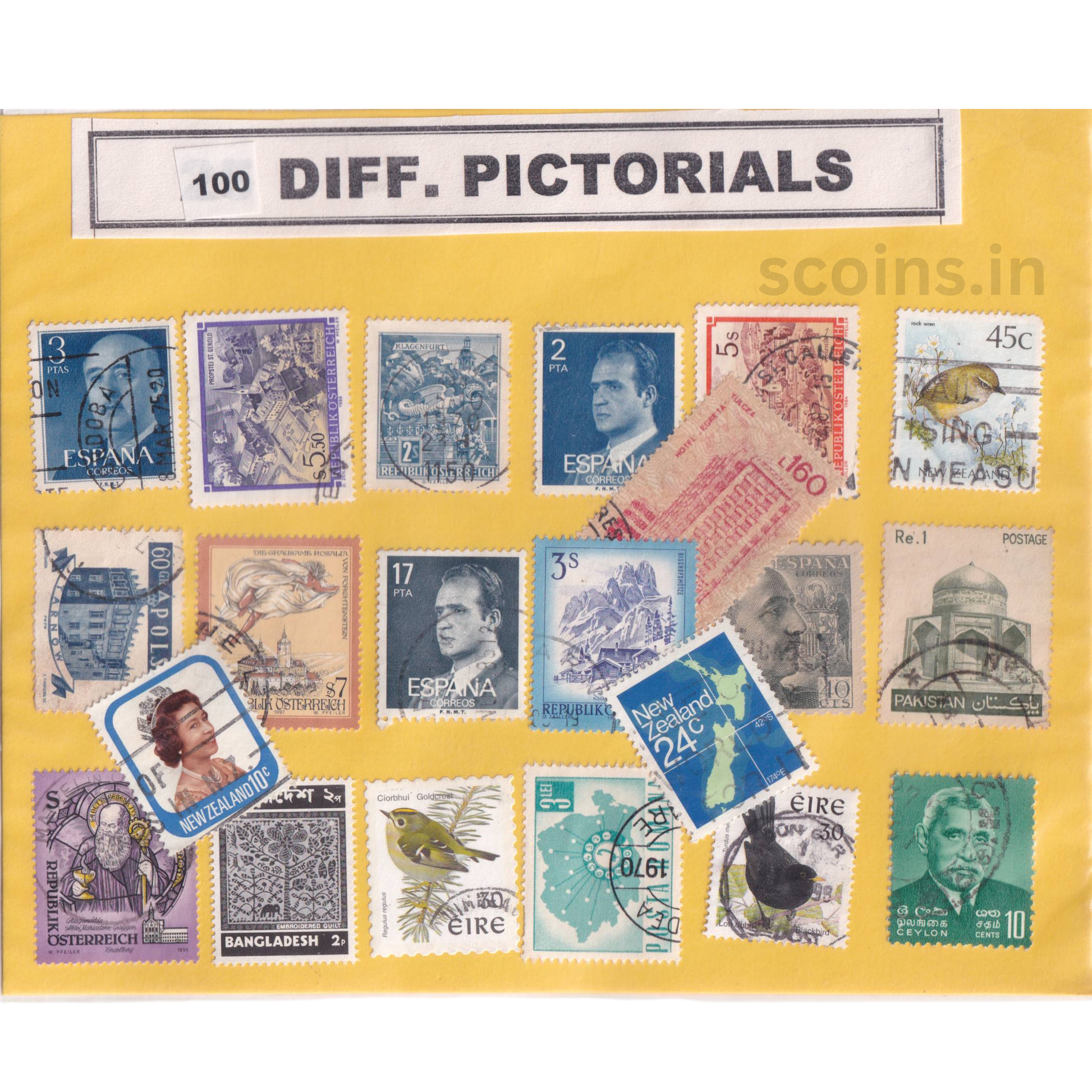 - A collection of 100 different stamps with diverse themes from across the globe.